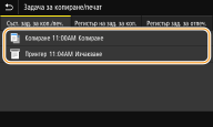 Когато за <Показване на регист. на зад.> е зададена настройка <Изкл.>, не можете да проверявате регистрите за печат. <Показване на регистър на задачи>