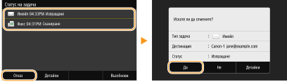 Оригинали са били сканирани и чакат да бъдат обработени. Изберете документа, който искате да отмените, след което изберете <Отказ> <Да>.