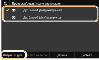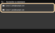 Можете да изберете една от използваните по-рано дестинации. Когато зададете вече използвана дестинация, устройството задава и същите настройки за сканиране, например наситеност, които сте използвали при последното изпращане на документи до тази дестинация.