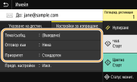 При прикачване на сканирани оригинали към имейл можете да зададете темата, съобщението, адреса за отговор и приоритета за имейла, преди да ги изпратите.