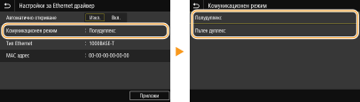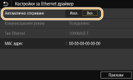 Ethernet е стандарт за обмен на данни в локална мрежа (LAN). Можете да зададете комуникационния режим и типа на Ethernet връзката. В общия случай устройството може да се използва, без да променяте настройките по подразбиране (<Настройки за Ethernet драйвер>), но можете да промените тези настройки в съответствие с мрежовата си среда.