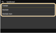 Puteţi utiliza <Reglaj fin> pentru a ajusta densitatea tonerului la trei niveluri de densitate: densitate mare, densitate medie şi densitate redusă.