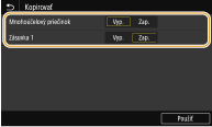 Vždy špecifikujte možnosť <Zap.> aspoň pre jednu zo zásuviek na papier. Ak pre všetky zásuvky na papier vyberiete možnosť <Vyp.>, nebudete môcť dokončiť postup nastavenia.