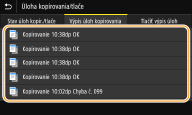 Keď je položka <Zobraziť výpis úloh> nastavená na možnosť <Vyp.>, nemôžete skontrolovať výpis kopírovania. <Zobraziť výpis úloh>