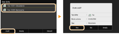 Ak chcete zrušiť odosielanie faxov hneď po výbere položky <Štart>, vyberte položku <Zrušiť> na obrazovke alebo na ovládacom paneli stlačte tlačidlo . Odosielanie faxov môžete zrušiť aj po kontrole stavu faxovania.
