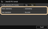 Vyberte možnosť <Zap.> v ponuke <Použiť zmenšenie PR. formátu>