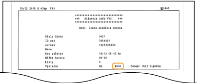 Ak nastane chyba, napríklad neúspešná tlač alebo ak nemôžete odoslať alebo prijať fax alebo naskenovaný originál, príslušný chybový kód sa zobrazí v zostave alebo na obrazovke výpisu úlohy ako trojciferné číslo. V nasledujúcej časti nájdete príčiny a riešenia jednotlivých chybových kódov. Postup vytlačenia chybového hlásenia a informácie v hlásení nájdete v časti