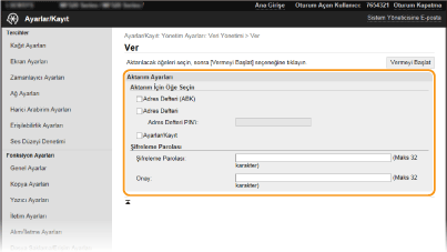 [Adres Defteri (ABK)] onay kutusu seçiliyse, Adres Defteri verileriyle makinenin ayarlarını aynı anda dışarı aktaramazsınız.