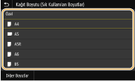 ![]() ![]() Sık kullandığınız kağıt boyutlarını <S1> ile <S3> arasındaki düğmelere kaydederseniz, bunları tek bir dokunuşla çağırabilirsiniz. Özel Bir Kağıt Boyutu Kaydetme