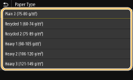 אם המסך המופיע לעיל לא מוצג כאשר הנייר נטעןאם אתה תמיד טוען אותו נייר במגש הרב-תכליתי, תוכל לדלג על פעולות הגדרת הנייר על-ידי רישום של גודל וסוג הנייר כהגדרת ברירת המחדל. עם זאת, אם הגדרת ברירת המחדל רשומה במערכת, המסך המופיע לעיל לא יוצג. כדי להציג את המסך, בחר <Specify When Loading Paper> (רישום הגדרות ברירת מחדל לנייר עבור המגש הרב-תכליתי).