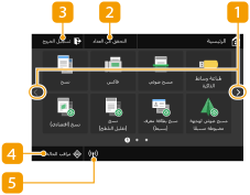 في لوحة التشغيل. استخدم هذه الشاشة لتحديد الإعدادات وتسجيل الوظائف.