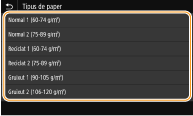 Després de desar l'opció de paper predeterminada, la pantalla d'opcions del paper no apareix quan es carrega el paper i sempre s'utilitza la mateixa opció. Si carregueu paper d'una altra mida o tipus sense canviar les opcions del paper, pot ser que l'equip no imprimeixi correctament. Per evitar aquest problema, seleccioneu <Especificar en carregar paper> al pas 3 i, a continuació, carregueu el paper.