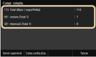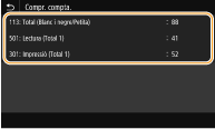 Mostra el nombre total de pàgines copiades i impreses en blanc i negre.