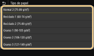 Si la pantalla anterior no aparece cuando hay papel cargadoSi siempre carga el mismo papel en la bandeja multiuso, puede omitir las operaciones de configuración del papel registrando el tamaño y el tipo de papel como opción predeterminada. Sin embargo, si se registra la opción predeterminada, la pantalla anterior no aparecerá. Para visualizar la pantalla, seleccione <Especificar cuando cargue papel> (Registro de las opciones de papel predeterminadas para la bandeja multiuso).