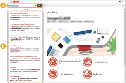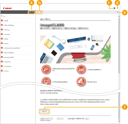 คลิกเพื่อสลับการแสดงผลระหว่างสารบัญและการค้นหา เมื่อสารบัญปรากฏขึ้น การคลิกที่