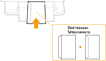 ส่วนนี้จะอธิบายถึงวิธีการใส่ซองจดหมายตามแนวที่คุณต้องการ รวมทั้งขั้นตอนที่คุณต้องทำให้เสร็จก่อนใส่ซองจดหมาย สำหรับคำอธิบายขั้นตอนทั่วไปในการใส่ซองจดหมายในถาดอเนกประสงค์ โปรดดูที่ การโหลดกระดาษในถาดอเนกประสงค์