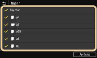 Bạn có thể chắc chắn rằng chỉ các cỡ giấy thường sử dụng mới được thể hiện trên màn hình chọn cài đặt cỡ giấy.