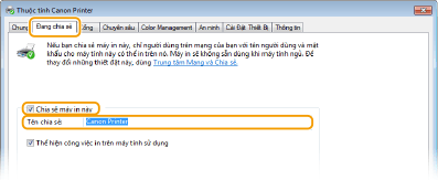 Khi bạn triển khai máy chủ in trong môi trường miền, vui lòng liên hệ với Quản Trị Viên Mạng của bạn.