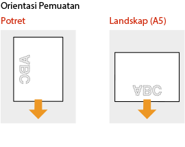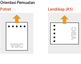 Muatkan kertas dengan muka berlogo depan (muka untuk mencetak halaman pertama dokumen) menghadap ke atas.