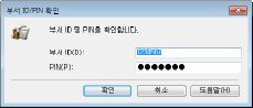 클릭하여 ID와 PIN이 올바르게 입력되었는지 확인합니다. 기기와 컴퓨터가 USB 또는 WSD(Web Services on Devices) 포트를 통해 연결된 경우에는 이 기능을 사용할 수 없습니다.