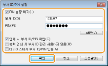 컴퓨터에서 작업할 때마다 [부서 ID/PIN 확인] 팝업 화면을 표시하려면 확인란을 선택합니다.
