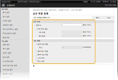 부서 ID를 등록하고 해당 ID에 대해 PIN을 설정합니다. 관리할 모든 부서 ID를 등록합니다.