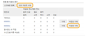 카운트를 0으로 되돌리려면 [부문 ID] 아래의 해당 텍스트 링크를 클릭하고 [카운트 삭제]  [확인]을 클릭합니다. 모든 부서 ID의 카운트를 0으로 되돌리려면 [모든 카운트 삭제]  [확인]을 클릭합니다.