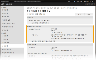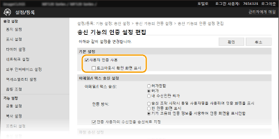 [송신 조작 시작시 동일 인증 정보를 사용하여 인증 화면을 표시]