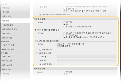 [파일 송신]에서 [내 수신인 또는 지정한 폴더만 허가]를 지정한 경우
