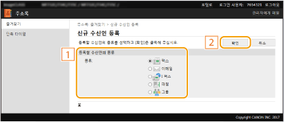 등록할 수신인의 유형을 선택하고 [확인]을 클릭합니다.