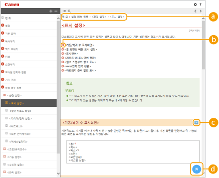 클릭하여 글자 크기 및 레이아웃과 같이 사용자 안내서의 표시 방법을 결정하는 매개 변수를 설정합니다.