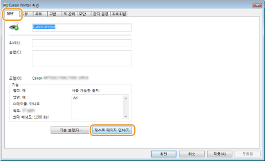 [일반] 탭에서 [테스트 페이지 인쇄]를 클릭합니다.