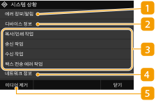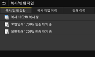 선택된 항목의 현재 상태를 표시합니다. 아래 예시는 <복사/인쇄 작업> 화면입니다.