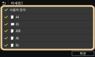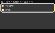 선택하지 않은 용지 크기는 용지 크기 설정 선택 화면에서 <기타 크기>를 선택해서 볼 수 있습니다.