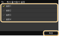 홈 화면에 표시되는 모든 설정에 대한 확인란을 선택하고 <확정>를 선택합니다.