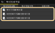 복사할 원고를 스캔한 후 상당한 시간이 경과했지만 문서 인쇄를 아직 시작하지 않은 경우 인쇄 대기 중인 대기 목록을 확인해보고 싶을 수 있습니다.