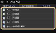 <작업이력 표시>가 <해제>로 설정된 경우 복사 작업 로그를 확인할 수 없습니다. <작업이력 표시>