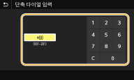 확인 화면이 나타나는 경우<팩스번호의 확인 입력>이 <설정>으로 설정된 경우 입력 화면이 다시 나타나 수신인을 확인할 수 있습니다(입력된 팩스 번호 확인). 수신인을 다시 입력합니다.
