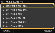 SSID가 기록해 둔 것과 일치하는 라우터를 선택하고 <다음 화면>을 선택합니다.