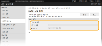 NTP/SNTP 서버와의 통신 테스트[SNTP 설정]에서 [설정/등록]