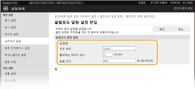장치 관리 소프트웨어에 기기의 전원 상태를 알리려면 확인란을 선택합니다. [알림]이 선택된 경우 기기가 슬립 모드에 있는 동안 불필요한 통신을 피하고 총 소비 전력을 줄일 수 있습니다. [포트 번호]
