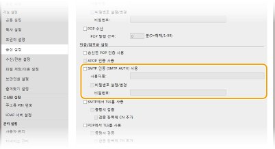 SMTP 인증(SMTP AUTH)을 구성하면 이메일 또는 I-팩스 송신 시에 사용자 이름 및 비밀번호로 사용자 확인을 수행합니다.