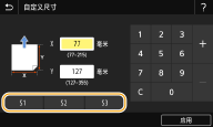 在纸张尺寸选择画面上为纸盒或多功能托盘选择 <自定义> 时,可以调用在上述步骤中注册的纸张尺寸。
