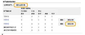 若要將計數歸零,按一下 [部門識別碼] 下的對應文字連結,然後按一下 [清除計數]
