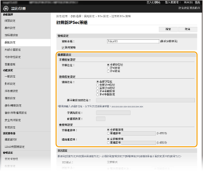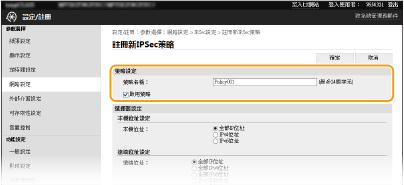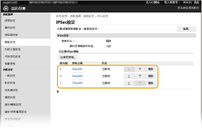 使用控制面板您也可以從首頁畫面中的 <功能表> 啟用或停用 IPSec 通訊。 <使用IPSec>
