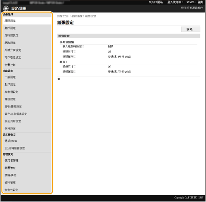 可以透過遠端使用者介面變更各種本機設定。也可以在本機指定大部份的設定,但是有些設定只能透過遠端使用者介面設定。本節介紹使用遠端使用者介面變更本機設定的基本流程。