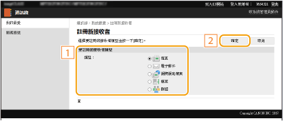選擇要註冊的接收者類型,並按一下 [確定]。