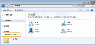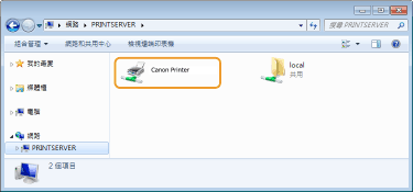 在 [網路] 或 [網路上的芳鄰] 中選擇印表機伺服器。