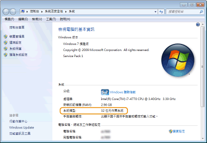 顯示 [32 位元作業系統]。