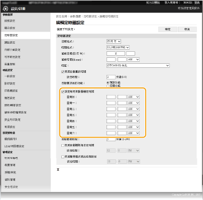 *如果電源在指定時間無法自動關閉,會以一分鐘為間隔再次嘗試執行,最多十次。如果十次重試之後仍無法關閉電源,則那一天將無法進行自動關機。